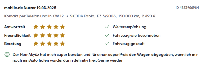 So können Sie sicher sein, ein zuverlässiges Auto zu erwerben. Überzeugen Sie sich selbst von unserem Service und unserem vielfältigen Fahrzeugangebot – wir freuen uns auf Ihren Besuch!